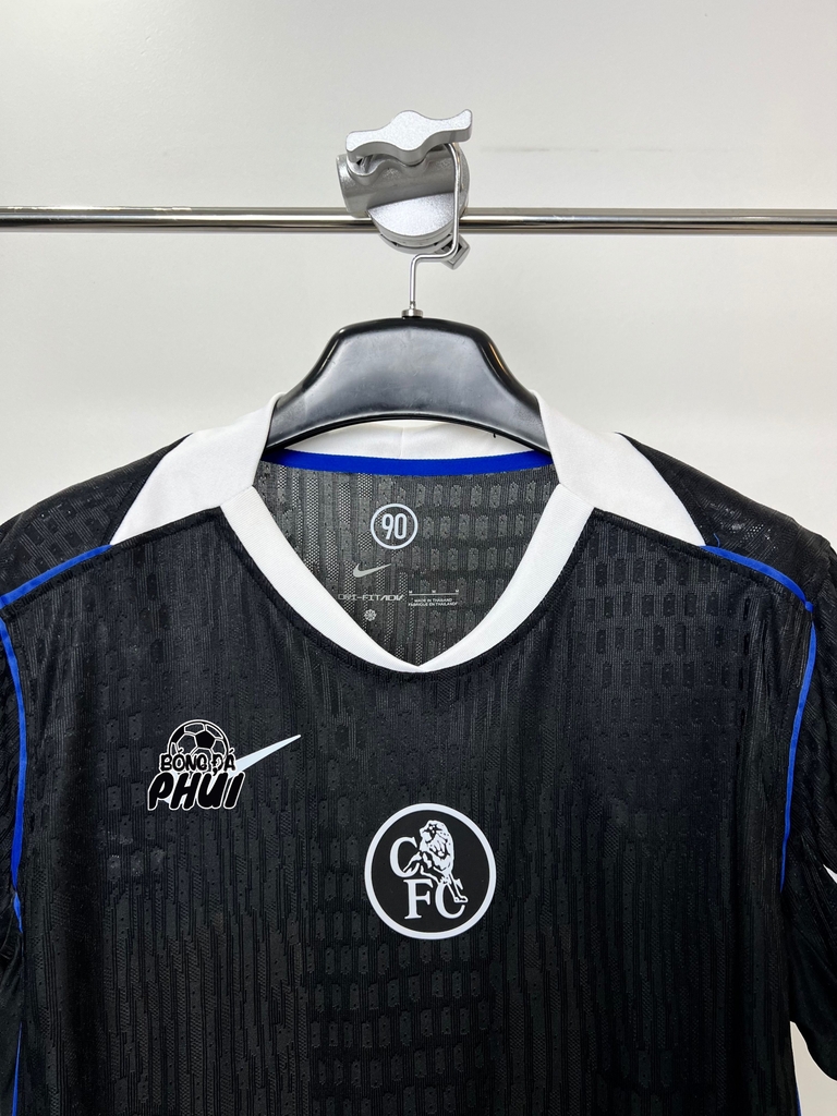 - Áo CLB Chelsea đen (sân khách) là bản Player Issue, body-fit, ôm cơ thể .